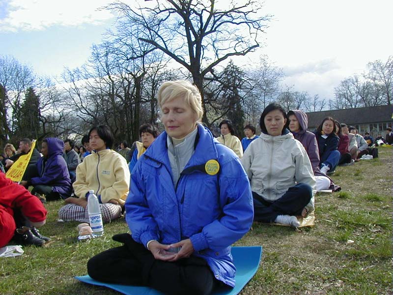 | 新闻发布会 | 康妮在日内瓦炼功的照片 |