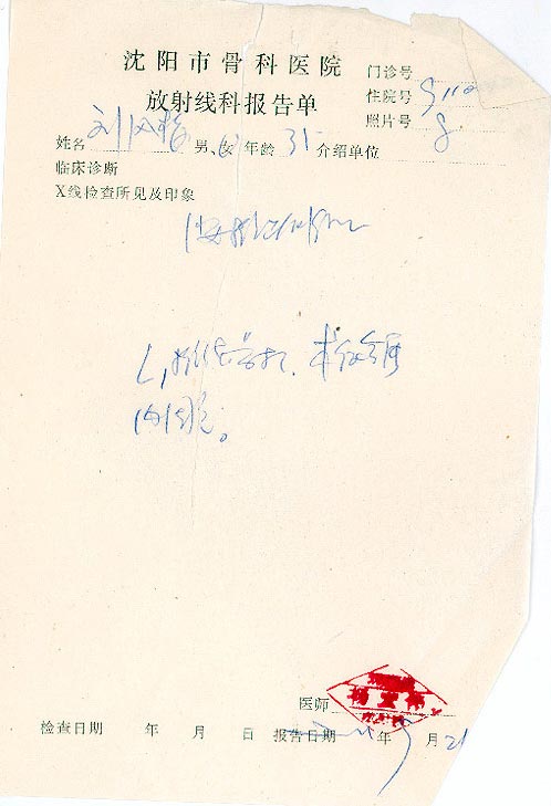 迫害经过:1999年11月初,我因炼功被犯人李玉莲、张杰毒打。那时,我正在绝食、绝水,身体很虚弱,被他们拳打脚踢打倒在地。李玉莲用皮鞋头踢我的两胁,我惨叫着起不来,之后又被用手铐铐在床上不让我动。她们又把我带到一个门和窗户都遮住的空房间里(三楼二室的对门),张杰用脏布堵我嘴,而后拳打脚踢,用脚踹我的腿、膝盖、肚子,我叫出了声,全二室法轮功学员听到后绝食抗议,要求警察放了我,这时苏境才把我放出来。