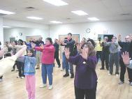| 功法表演 | 迎新年庆祝游行 | 在法轮功专场介绍会上,各族裔市民学炼法轮功 |