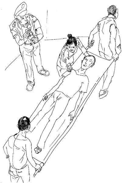 7.同年12月3日,他又被非法转入刑拘第三号监室。在那里受到了犯人们惨无人道的迫害。犯人们让他睡在水泥地上(长达四、五十天)。每次晚饭后都毒打他,有一次王金国被打得发出了痛苦的声音,这时犯人卜明星、刘志国等三人象恶狼一样一拥而上,又把他狠狠地摔在地上。8.还有一次,犯人用手指狠狠地弹他的眼球,痛得他眼泪哗哗直淌。恶徒却称之为“弹灯泡”。犯人还常常穿着硬硬的皮鞋,照他的心窝使劲地踢,这经常使他上不来气,疼痛不已。9.最严重的一次,狱霸卜明星给王金国“打榨菜”,他抡起双拳左右开弓,拼命照王金国脸上不知打了多少下,致使王坐立不住,大口大口地呕吐。此时王金国已被迫害得心、肺、肾功能急剧下降,脑袋肿大,呼吸困难,尿血,周身无力,血满衣襟。面对这一幕幕,看守所的管教却视而不见,反而鼓励犯人们的暴行。