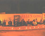 弟子们挂起了“法轮功”和“SOS中国停止谋杀”的横幅,摆上死难者的照片,点上蜡烛悼念被江泽民邪恶集团迫害致死的同修。过路的许多人都紧紧地握着我们的手,鼓励我们一定要坚持下去。全世界大法弟子齐发正念除恶的时刻将近,弟子首先意念中清除自己思想中的不好的思想念头、业力和不好的观念或外来干扰。这时周围一片寂静,好像等待进攻的号令一样。时刻一到,随着口诀的念动,身体里象是反应堆一样沸腾起来,在打手印时,手掌发烫,有强大的能量从手掌打出去除恶。