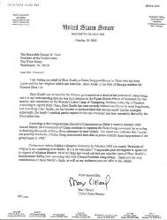 您于2002年2月访问北京的清华大学时说,“宗教自由不应让人惧怕。它应该受到欢迎。”我感谢您能够在中国为宗教自由而大胆直言,并希望您能在不久与中国国家主席江XX会谈时提出周雪菲被监禁一事。谢谢您关注周雪菲的困境,同时也谢谢您能为她提供任何的帮助。