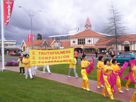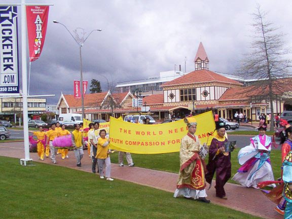 | 在罗陀如阿市中心学员表演“法轮大法好” | 游行行经罗陀如阿旅游服务中心 | |