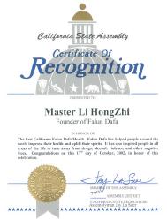 加州众议院第77区议员褒奖李洪志先生