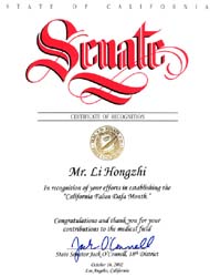 加州参议院议员欧·康奈尔先生褒奖李洪志先生