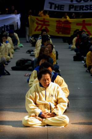 中央社:江泽民访美期间法轮功将练功游行以示抗议