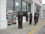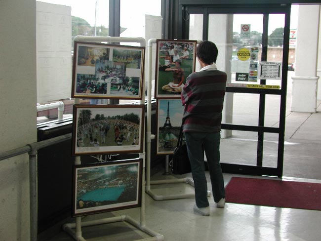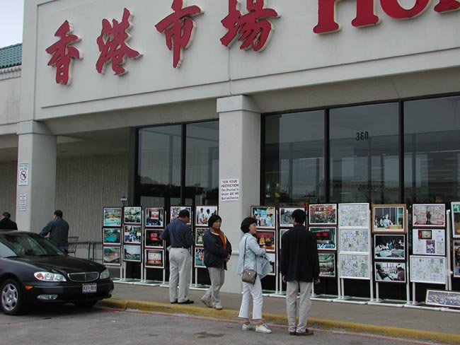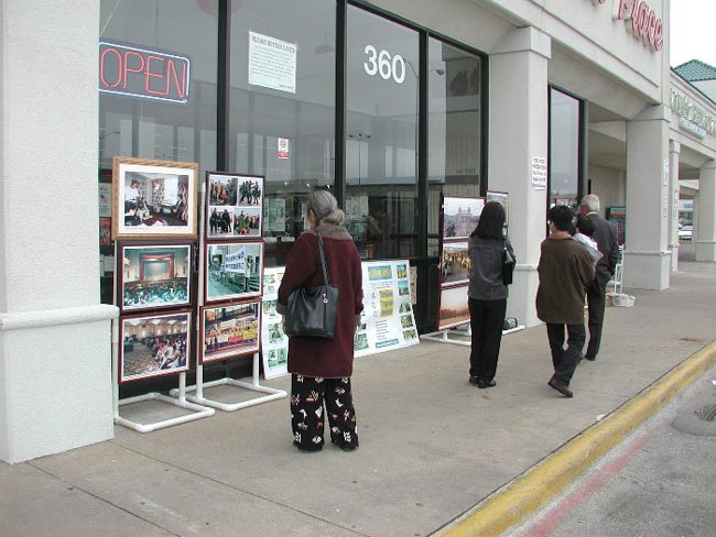 周六、周日的两天阴沉沉欲下雨的样子,但学员们坚持按计划举行活动,因为大家都清楚地意识到对中国人民讲清真相有多么的重要和紧迫。真相图片摆放在购物中心橱窗的外面,人们从很远就可以看到。这次主要展出的照片包括99年以前大法在中国的情况,多幅中国主要城市学员炼功的巨幅照片,大法在海外的洪传盛况,和江氏政府对法轮功的镇压。学员们准备了各种真相材料,包括英文、越南文等。许多中国人都高兴的接过了学员们的真相资料。