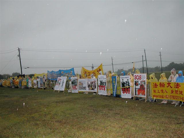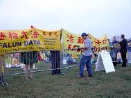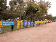 千余名学员在克劳福得镇和平抗议江氏迫害