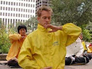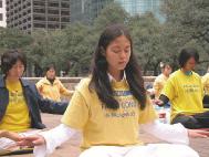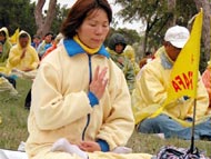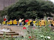 学员通宵在洲际酒店外发正念清除另外空间的邪恶因素