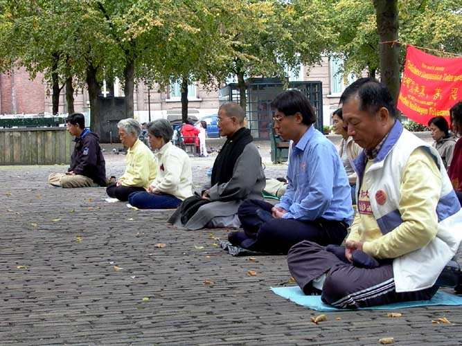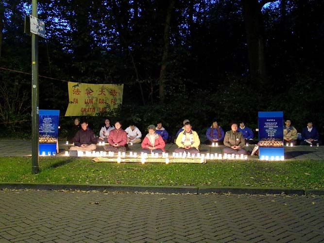 【明慧网2002年10月4日】2002年9月27日,正逢荷兰“反暴力日”,刚刚结束在丹麦的欧亚峰会(ASEM)期间请愿活动的台湾弟子又转往荷兰。刚下飞机大家就来到在海牙的首相府和国会门前和平静坐,呼吁世界善良人士对法轮功在中国遭受的严重迫害的关注。这次活动引起当地媒体的关注,几家大报都给予了正面报道。当晚,我们又在中国驻荷兰大使馆前烛光守夜。