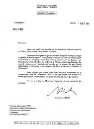 我想向您明确表达,法国一直对法轮功成员能成为受害者的侵犯人权的行径表示担忧。特别是在欧盟与中国就人权问题对话时,经常性地提醒中国政府要尊重个人和团体的自由,尤其是结社、观点及表达的自由。