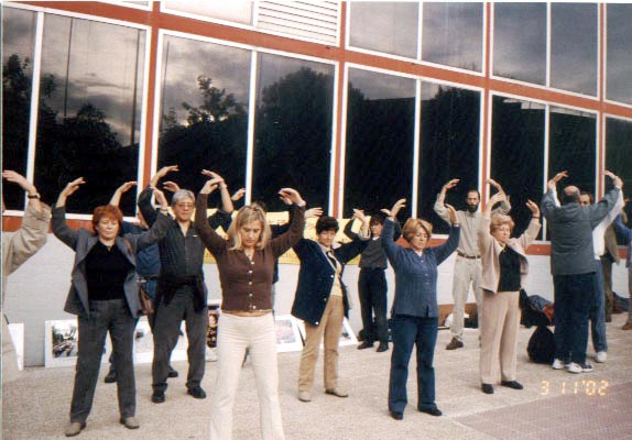 | 西班牙学员们在大使馆前发正念。 | |