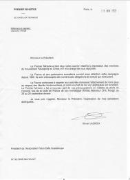 总理收悉您有关法轮功运动成员受到迫害的信件,他责成我答复您。