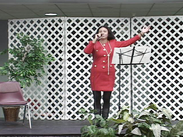 | 法轮功学员表演女声独唱 | 学生们对法轮功展桌兴趣浓厚 |