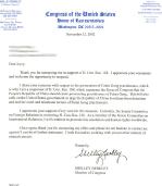 我很高兴您支持我对该议案投赞成票。目前188号决议正在参议院对外关系委员会的审理之中。作为众议院国际关系委员会委员,我将为推行188号决议和促进世界人权不懈努力。
