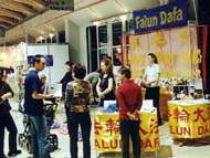 许多参观者练过各种气功,听说我们免费教功感到很意外,告诉我们奥地利的许多气功班非常昂贵。有一位女士看到学员们炼第五套功法时感到很吃惊,对我们说,按照她练的功法打坐,要达到这样笔直的程度,需要非常长的时间。她说话时突然旁边的一个气球爆炸了,她吓了一大跳,然后又指着炼功的大法弟子惊讶地说,他们心里也能达到很安详的程度,这么大的响声他们甚至没有抖动一下。还有的人在其他的气功班上听到了对大法不好的言论,通过这次的健康博览会,消除了对大法的抵触和误解,还跟在场的大法弟子学习了功法。第一天对我们持怀疑态度的其他展台的举办者,第二天开始主动很友好地和我们打招呼,并向我们索要资料。