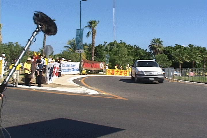 我们到达会议厅时,看见人们已三、五成群地往外走,冰岛总统演讲已结束,但我们坚信我们一定有机会给总统讲真相,所以仍向会议厅走去。在大厅门口刚好遇见先前到达的同修,得知冰岛总统在回答记者提问时曾否认有黑名单之事。现他仍在会议厅与人交谈,我们快步前往。