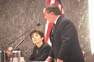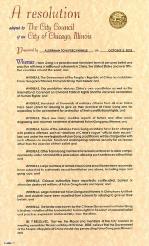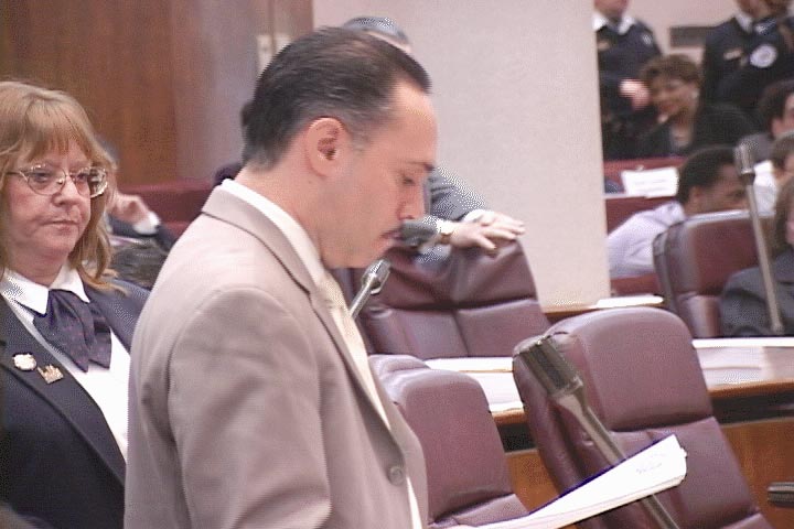 | 11月6日市议会会议现场 | 11月6日芝加哥市长Richard Daley主持市议会 | 人际关系委员会主席Billy Ocasio宣布全票通过支持法轮功的决议案 |
