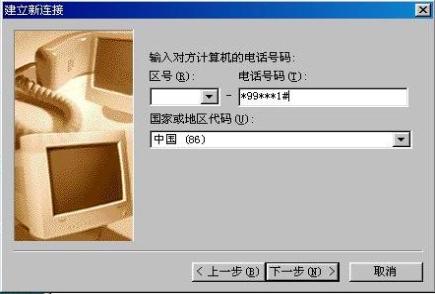 我的电脑拨号网络添加新连接添加新连接选择"标准19200 bps调制解调器",同时在"设置"中选择最快速度为57600点击下一步,在电话号码中输入*99***1#点击下一步完成安装,以后如需要修改以上配置可进入该拨号网络连接的"属性"修改即可