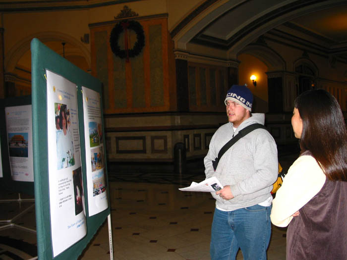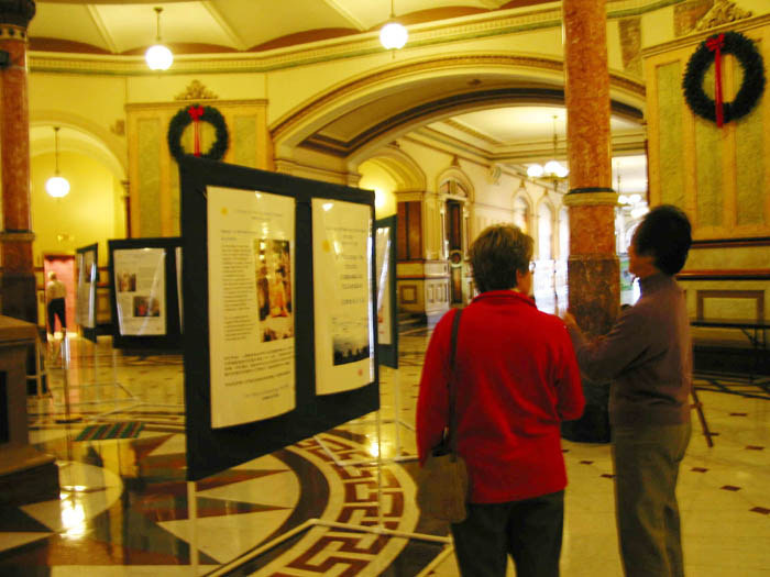 【明慧网2002年12月13日】在邻州法轮大法学员的帮助下,伊利诺伊州学员于12月3、4和5日连续三天在伊利诺伊州州府大厅举办了“回归真、善、忍之路摄影图片展”。