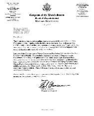 我是国会188决议97位联合发起人之一,这一决议由佛罗里达州国会议员罗丝.雷提娜提出。它表达了国会希望中国[江氏]政府停止对法轮功学员迫害的意愿。我也是国会议员汤姆.兰托斯提出的73号决议的联合发起人之一,这一决议建议发起“国际北京奥运会人权运动”,使国际社会一致向中国施压,令其在奥运会开幕之前特赦所有政治犯,包括法轮功学员。我希望中国在此问题上对我们的努力和国际呼声能做出回应。