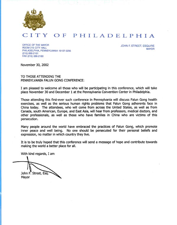 致所有参加宾州法轮功大会的与会者: