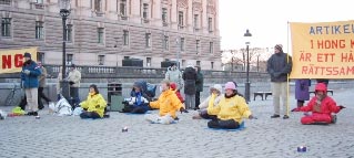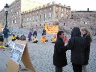 图片报导:瑞典法轮功学员反对23条集会受关注