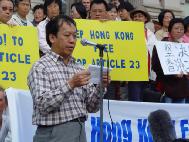 宗教界代表李小明先生说:“大家都知道,向以仁爱、慈悲和宽容为怀的宗教界人士,一般都不参加政治活动,不反对政府。但是,‘23条’的目的十分险恶,也十分明确,那就是改变‘一国两制’,在香港同中国大陆一样实行法西斯式的专制独裁,严禁人们的思想、观点和言论,不允许任何不同于政府的声音。这严重违反了世界各民主国家普遍实行的宗教自由的原则,严重侵犯了宗教界人士崇拜、聚会、修炼、交流等权利。这就是香港天主教大主教陈日君和基督教、佛教界的领袖们亲自走上街头,游行示威的原因,这也是我们宗教界人士今天在这里参加集会的原因。”
