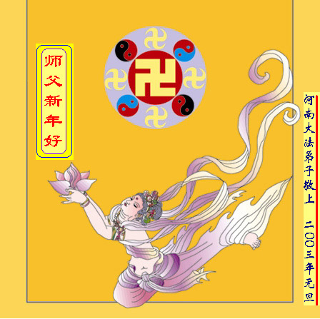 在2003年新春到来之际,我们中国大陆党政机关的大法弟子,包括已被非法开除公职乃至仍被非法关押的大法弟子,以无比崇敬的心情,双手合十向慈悲伟大的师尊问好:师父,您好!您辛苦了!