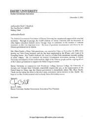 爱默蕾(EMORY)大学学生会一致通过这项决议(随信附上)。通过这一决议,爱默蕾大学一万一千五百名学生和乔治亚州其他高等院校的学生们希望能够推动全国范围内对这一至关重要问题的关注,那就是中国[江氏]政府对其公民的一贯歧视和迫害问题。