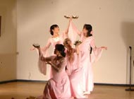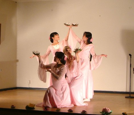 一位西人学员演唱了他自己创作的歌曲“赶快醒来吧,我的中国朋友”。歌中唱到:赶快醒来吧,我的中国朋友,看清事实,制止这场残酷的迫害。法轮功功法的表演将大家带入了一个祥和神圣的境地。一位华人学员结合中医讲述了身神合一和强身健体的道理。悠扬的古筝乐声使人们对中国文化深奥的内涵有所体悟。最后,四位女学员伴随着莲花颂的乐曲翩翩跳起了自编的莲花舞。她们那美丽的舞姿和动听的音乐将联欢会推向高潮。