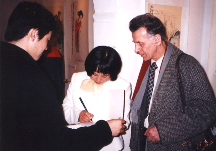 通过翻译,章告诉我们她来乌克兰是想让这里的人们了解中国传统的艺术,还有介绍一种精神修炼--法轮大法。Dneprpetrovsk的法轮功学员安排章这次的旅行。这个城市大约有两百多法轮功学员。法轮大法的宗旨是:找自己的不足和提高道德水平。然而,在中国法轮大法却被打压。两年前,章被关了八个月。现在这40岁的画家在全世界做画展。她认为是因为法轮大法使她的作品更加祥和和宁静。章翠英非常喜欢Dnepropetrovsk,这次她有机会结识一些当地的画家。我们建议你马上去看一看她的画展--因为明天将是最后的一天。