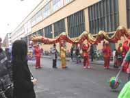 与此同时,在相距两公里的松比西广场上,由丹麦移民部长致词,并为龙头点睛,舞龙表演在上千的华人观看下,拉开序幕,继而舞上大街,开始丰富多采的游行。