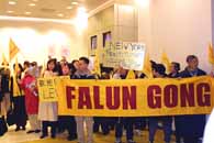 2001年,中国驻纽约总领事馆曾对法轮功学员参加新年游行之事进行干扰,企图将法轮功的队伍排除在外,未能得逞。今年,法轮功能否参加再度成为社区舆论的焦点。由于法轮功学员一贯的良好表现,2002年新年游行筹委会曾明确表态不会拒绝法轮功参加。为此事,中国领事馆竟然登报发表公开信抗议,造谣诬蔑法轮功,挑动一些华人团体退出游行,并且恐吓筹委会负责人。迫于压力筹委会违反惯例于游行的头两天进行投票表决排除法轮功参加。