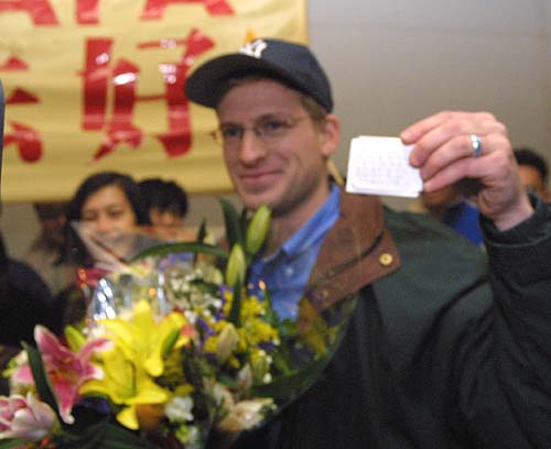 据美国之音2002年2月13日报导,因在天安门广场示威而被驱逐出境的一名美国人和一名加拿大人已经分别回到了美国和加拿大。据他们反映,在被拘押的27个小时期间,他们受到了中国官方的粗暴对待。