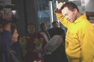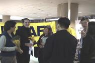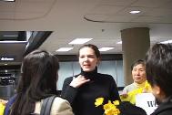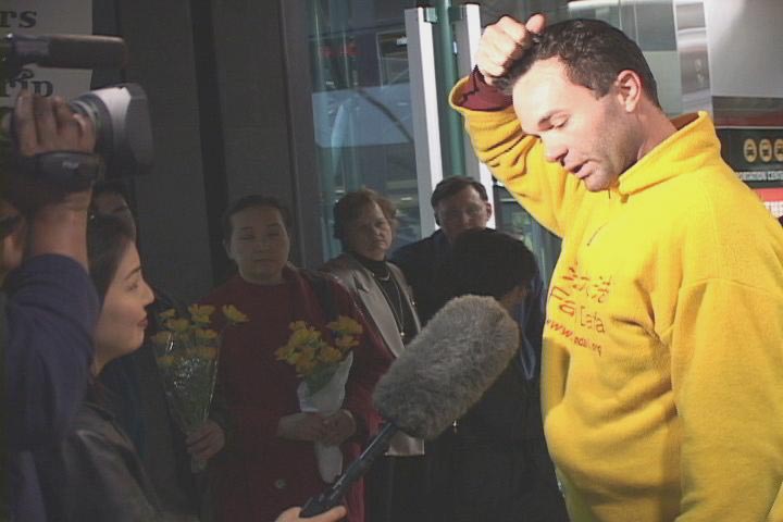 大卫、珍妮和爱莎先后经由温哥华,于6点20分前后抵达西雅图国际机场。早已经等候那里的家属和大法同修们,在一片祥和慈悲的普度音乐声中,手持鲜花和大法横幅,欢迎为了信仰自由和救度世人不惜一切、到法轮大法的故乡──中国去证实大法的西人大法弟子。