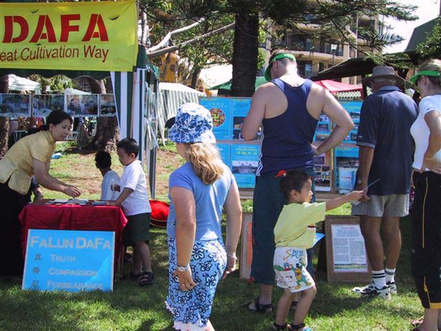 我们也举行了正法之路图片展,使更多的人了解大法洪传的伟大历程。一整天都有很多人来到我们面前,向我们咨询有关大法的情况。