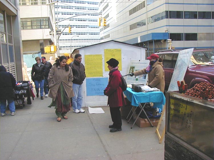 自1月31日起,法轮功弟子在原市贸中心位置与华尔道夫大饭店,林肯中心等处同时展开向世人讲清真相的活动。