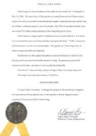 宾西法尼州德拉洼县上达比镇宣布“法轮大法日”