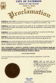在褒奖令中,巴恩思(Barnes)市长同全社区一道,共同认知法轮大法对全世界所带来的积极影响,并号召全体市民和社区组织共同遵守2002年1月28日至2月3日为帕特森市“法轮大法周”的公告。