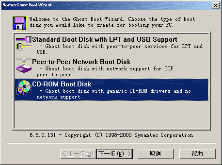 选择Cd-ROM BOOT Disk (如果你是使用USB光盘刻录机器,或许应选择支持LPT and USB的第一个选项,但笔者没测试) 点下一步。