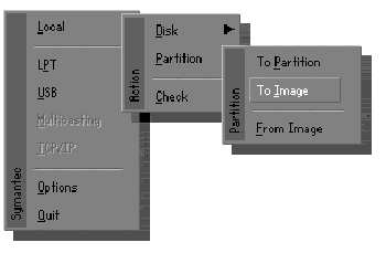 如果你使用Partition Magic等软件使你的硬盘变成多操作系统多重启动(如一个硬盘存在win2000,英文win98,中文win98或者linux等),也可以选择Loacl→Disk把整个硬盘备份下来,但恢复时,就会把全部分区都洗掉了。