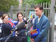 大卫:“感到很美好。父母对我都很支持。在去北京的前一天,妹妹出于担心我的安危,想阻止我去北京。但妈妈说:‘不要阻止他,他有自己的选择,要尊重他的选择。’父母和妹妹都知道我是对的,中国(江泽民)政府做的是错的。还有这么多法轮功学员去机场接我,我们是个温暖的大家庭……。”