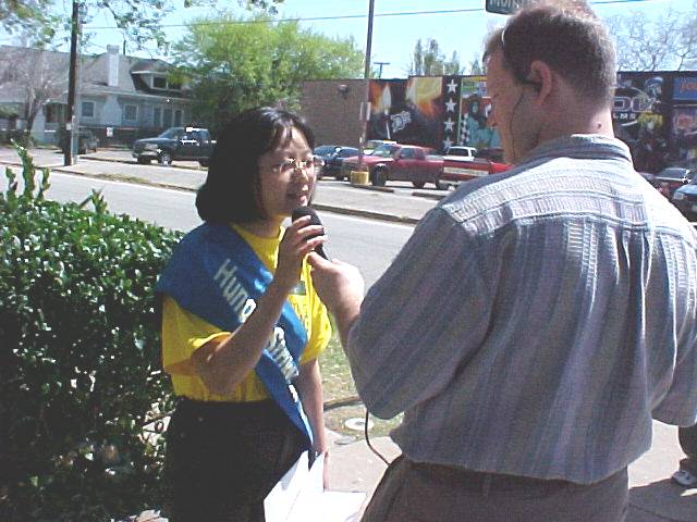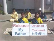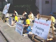 大法弟子王洋和王晓丹分别是达拉斯南方卫理会大学和奥斯汀大学的学生。江泽民悍然下达对法轮功修炼者非法“杀无赦”令消息曝光后,她们对大陆同修们和亲人将面临的危急情况忧心如焚。江泽民罗干政治流氓集团三年来无休止的对大法弟子的迫害,不断制造杀人惨案。王洋本人在来美国前曾因炼功而遭警察拘捕并折磨;王晓丹的父亲因炼法轮功被判重刑16年,至今仍在监狱受折磨。因此,她们俩决定用绝食方式呼吁国际社会的紧急救援。