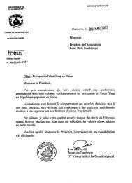 我坚决谴责中国当局对手无寸铁的、专心修炼能改善他们身心的传统功法的人们的迫害行径。