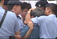 香港警方在3月14日发出第四号新闻公布中,宣称昨天在中联办警方强力搬走静坐的法轮功学员的过程中,“某些请愿人士反抗,令五名警察受轻伤,受伤警员有胸口被踢,亦有一名警员手臂被咬伤”。在昨日深夜仍被警方无理拘禁的法轮功学员严正澄清:法轮功学员一贯按照和平、非暴力的“真善忍”精神处事待人,绝无法轮功学员伤害警员之事,而有关警员手臂被(学员)咬伤云云,纯属别有用心的污蔑之词。相反,在警察动粗的过程中,有9名学员受伤。但学员要到医院验伤,却受到有人故意拖延与掩盖真相。对于上述有关方面知法犯法的行为,法轮功学员保留依法追究的权利。