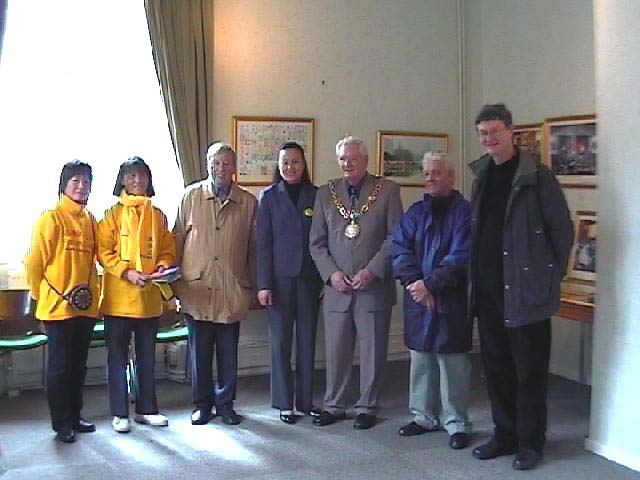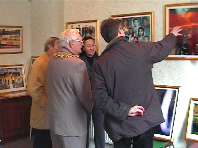 英国唐沃斯市议会去年讨论通过谴责中国江泽民政府镇压法轮功的议案。中国大使馆曾派人去该市诽谤法轮功。这次展出的一幅幅记录正法历程的珍贵照片有力地戳穿了邪恶的谎言。也许是大法弟子的纯正、祥和及展厅所洋溢的正念之场感染了市政厅的官员,彼此的交谈充满了和谐轻松的气氛,展厅里不时响起开心的笑声。临走前,市长特地要求得到法轮功教功录像带,表示一定学炼功法祛病健身。