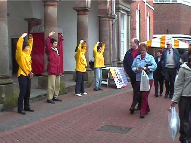 来自英国中部地区的10多名大法弟子参加了这次展览活动,并在市政厅外的街头炼功及分发真相传单。天公也跟着作美,一整天碧空如洗,阳光明媚。