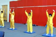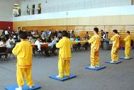 期间,学员们还身着黄底红边的炼功服给所有观众演示了五套功法。不少人表示将参加由学员每周定期在公司活动中心举办的教功班。