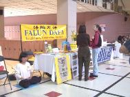 一年一度马里兰州蒙哥马利郡主办的妇女健康展览会于贝莱尔高中举行。“法轮功”亦是一百多个展位之一。一早开始,几位大法弟子就忙着发资料并。马里兰州及蒙郡多位众议员先后光临会场,也都停留在我们的展位,得到了大法的资料,并且说:“我们都明白法轮功在中国被镇压的这些不幸的情况,我们深感同情。”其他所有在我们展位停留的来宾,也都了解了法轮功在中国被的真相,表示非常地难过和不平。一位乔治城大学政治系教授仔细地问了很多的问题,收集了很多的资料,临行时主动在‘呼吁停止镇压法轮功’的单子上签了名。隔壁展位的老太太跟着大法弟子炼功后,取了英文资料外还拿了许多中文资料要送给她的中国好朋友。还有一位正义的老太太,问清了更多的真相后表示要直接写信给‘罪魁祸首’。